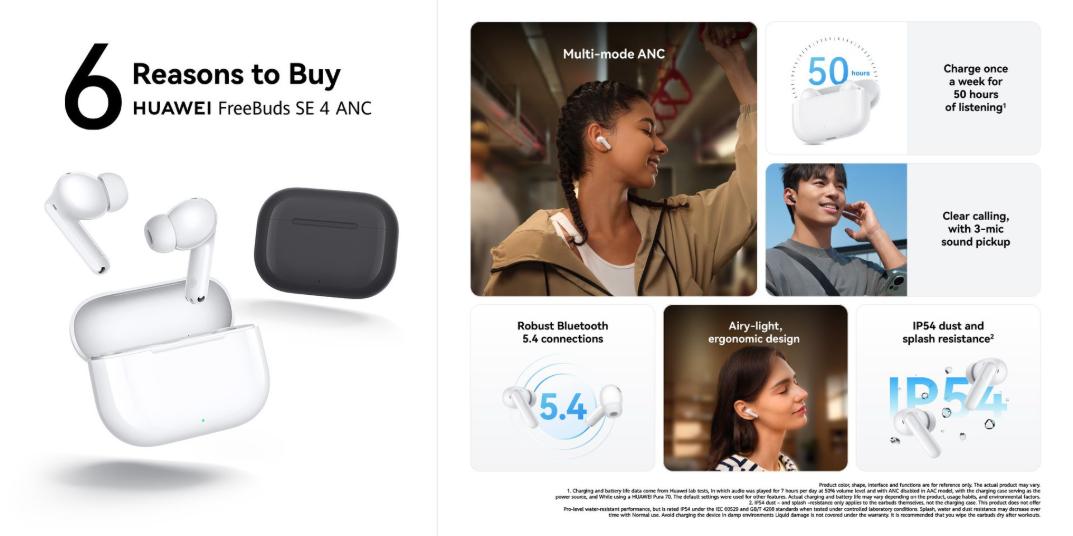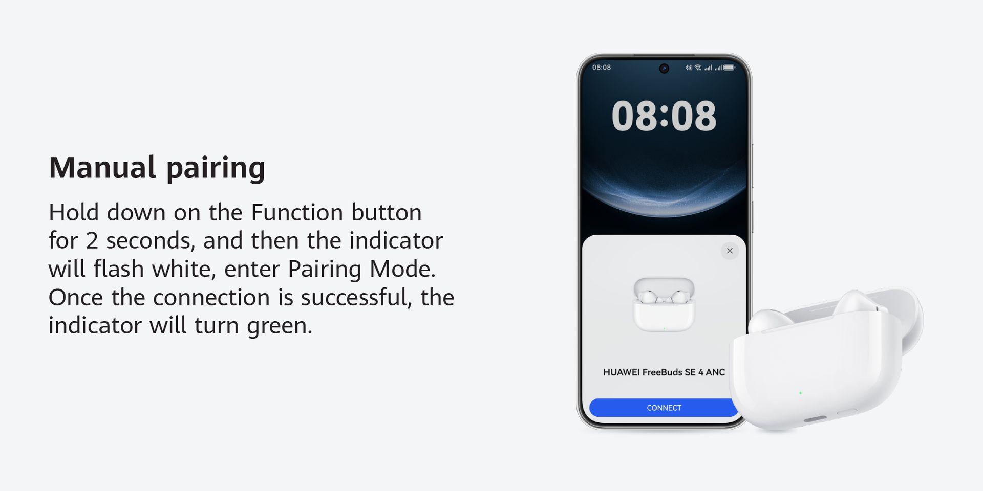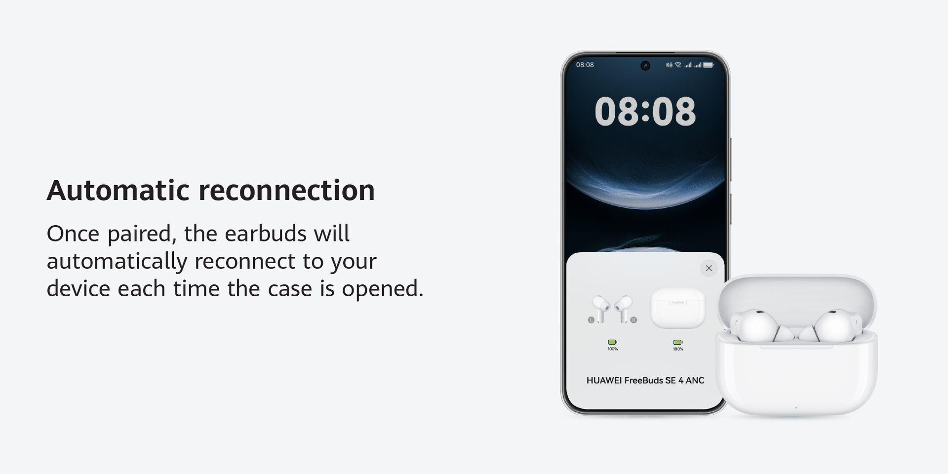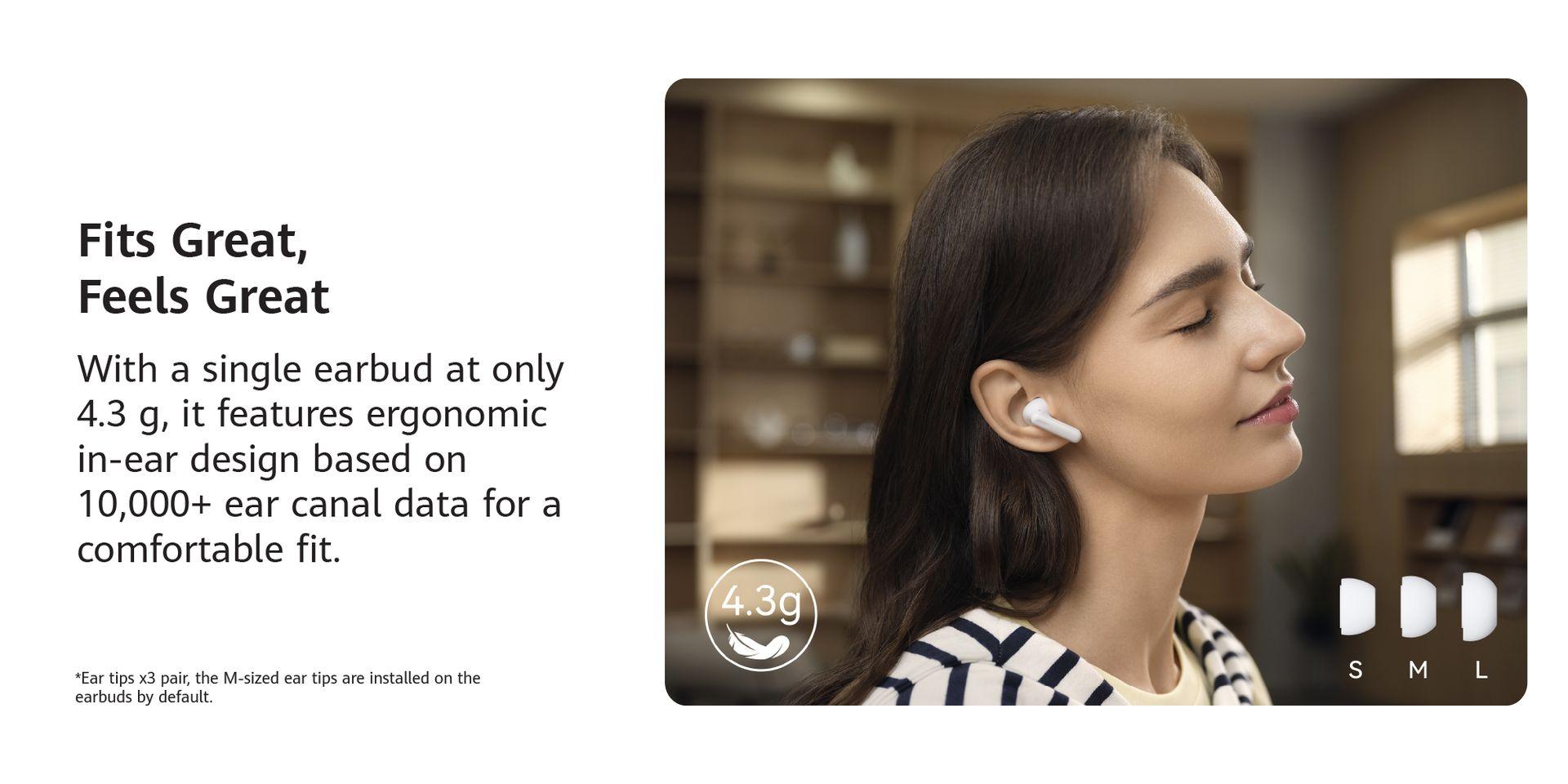 | Battery | Rated capacity Battery type: Lithium-ion polymer battery Single earbud: 41 mAh Charging case: 510 mAh Charging mode Wired charging:USB Type-C Charging Duration Wired charging: approx. 110 mins (only the charging case)* approx. 110 mins (with the earbuds in the charging case)* approx. 60 mins (when the charging case charges the earbuds)* *Battery life and charging data come from Huawei labs with the following testing conditions: volume set to 50%, AAC format used, and default settings for other functions. The test results are for reference only. Actual usage may vary depending on the volume level, audio source, connected devices, environmental interference, enabled features, and usage habits. Battery life Music playback (with noise cancellation enabled): 7 hours after a full charge and 35 hours when used with the charging case* Music playback (with noise cancellation disabled): 10 hours after a full charge and 50 hours when used with the charging case** Voice calling (with noise cancellation enabled): 5 hours after a full charge and 25 hours when used with the charging case* Voice calling (with noise cancellation disabled): 6 hours after a full charge and 30 hours when used with the charging case** *Battery life data comes from Huawei lab tests, in which audio was played at a 50% volume level and with ANC disabled in AAC mode, and while using a HUAWEI Pura 70. The default settings were used for other features. Actual battery life may vary depending on the volume level, audio source, environmental interference, product features, and usage habits. **Battery life data comes from Huawei lab tests, in which audio was played at a 50% volume level and with Wind noise reduction mode disabled but ANC enabled in AAC mode, and while using a HUAWEI Pura 70. The default settings were used for other features. Actual battery life may vary depending on the volume level, audio source, environmental interference, product features, and usage habits. |