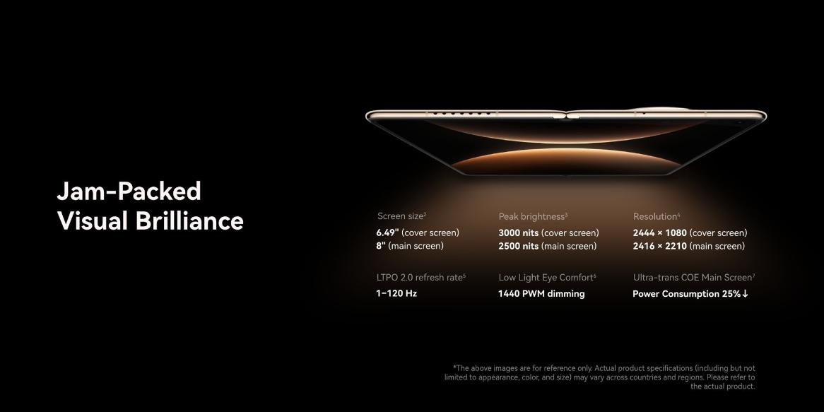 | Resolution(Display) | 2210 x 2416 pixels (~412 ppi density) Cover display: LTPO OLED, 120Hz, 1440Hz PWM, HDR, 3000 nits (peak), 6.49 inches, 1080 x 2444 pixels, Kunlun Glass 2, 412 ppi |
