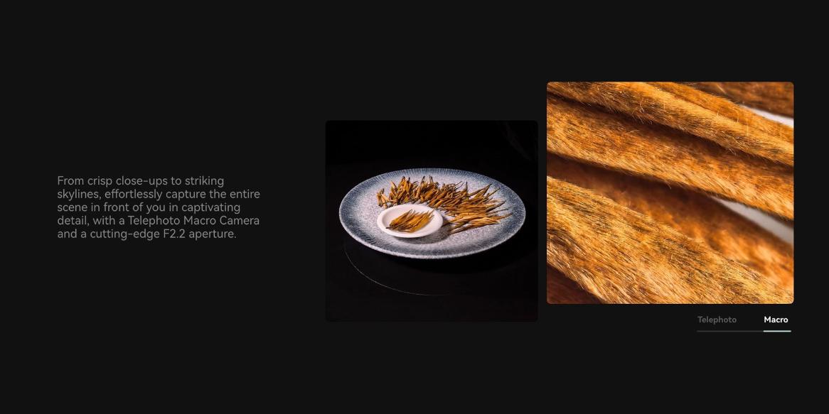 | Triple(Main Camera) | 50 MP, f/1.5-f/4.0, 24mm (wide), 1/1.28", PDAF, OIS* 50 MP, f/2.2, 81mm (periscope telephoto), PDAF, OIS, 3.5x optical zoom 40 MP, f/2.2, 13mm, 120˚ (ultrawide), PDAF |